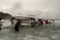Big overnight breeze causes several competing yachts to run up the beach