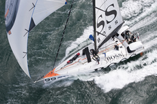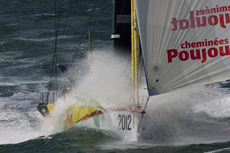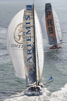 The Artemis Challenge started in a moderate southerly breeze at 1000 BST as PRB stayed close to the island shore out of the foul tide and gained an advantage that the French team managed to hold right through to the finish. By the time the four-boat IMOCA 60 fleet of PRB, Bernard Stamm's new Cheminees Poujoulat, Artemis Ocean Racing and Hugo Boss rounded Bembridge Ledge at the eastern end of the island and headed upwind round the back of the island, the wind was increasing in strength reaching up to 25 knots, with stronger gusts, which provided spectacular downwind ‘surfing’ conditions on the home run from The Needles to the Royal Yacht Squadron finish line off Cowes. Cheminees Poujoulat challenged PRB throughout while Artemis Ocean Racing and Hugo Boss engaged in a great battle for third place.